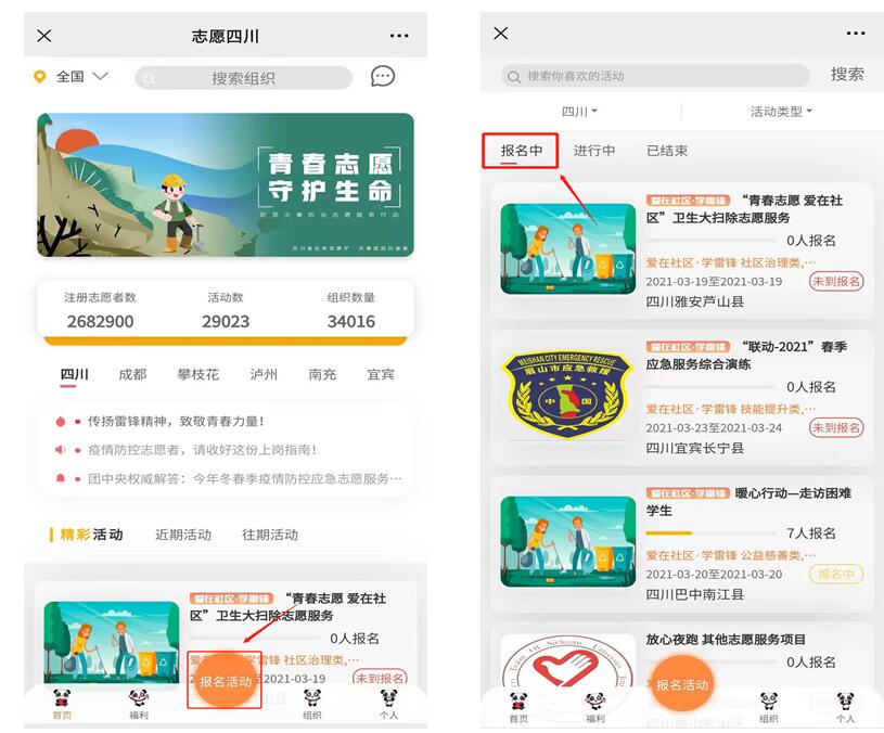 第一步:进入志愿四川平台成人色情后,点击“报名活动”按钮。