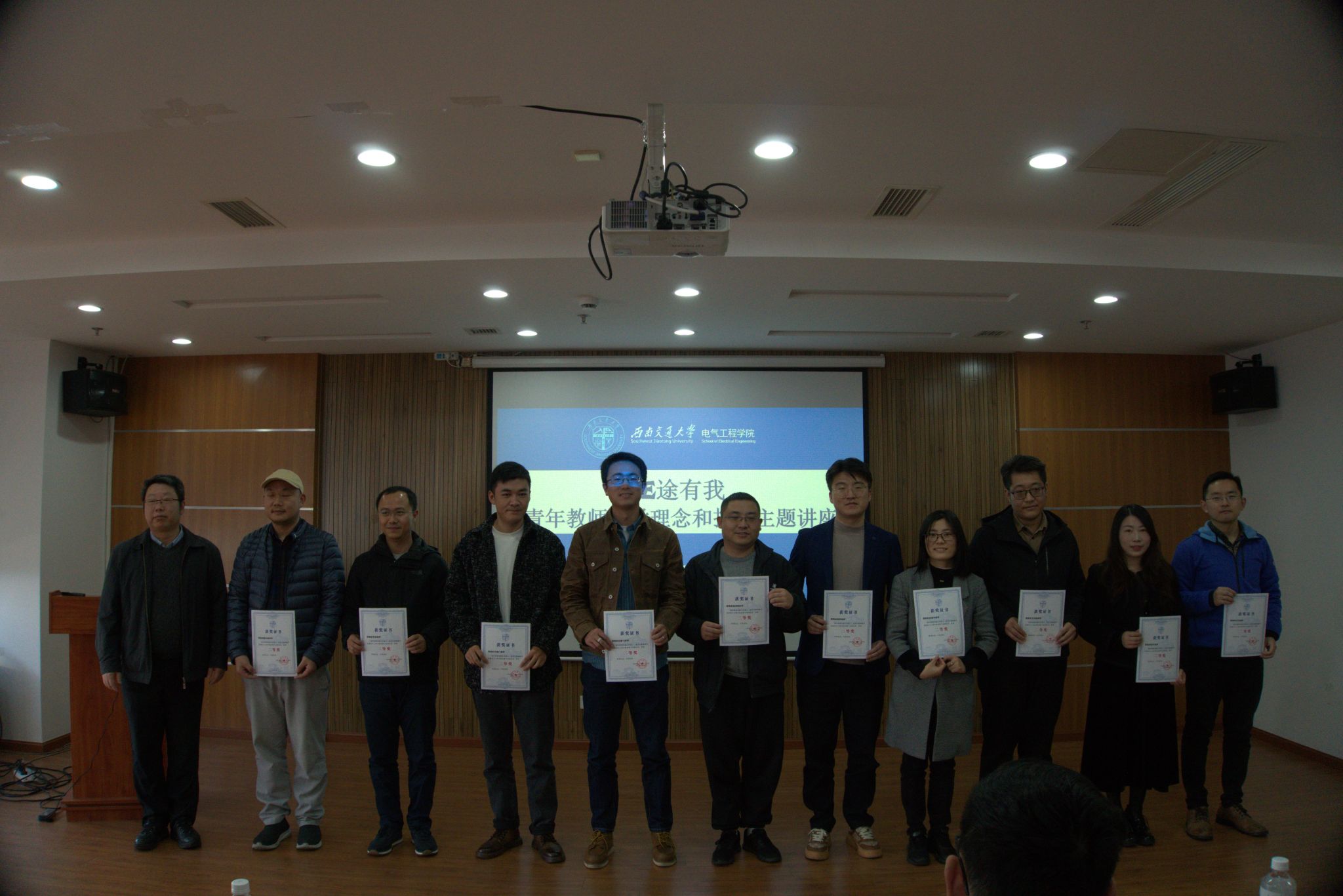 活动伊始,王斌书记代表成人色情 为教学竞赛一等奖获得者沙金、艾竞、关金发、廖凯、王青元、冯玎老师,二等奖获得者孙鹏飞、张晓平、魏文斌、苟斌、林圣、韩莹、王东阳、韦晓广、杨平、杨泽锋、王玘老师与其他获奖老师颁发证书,现场气氛热烈,爆发出阵阵掌声。
