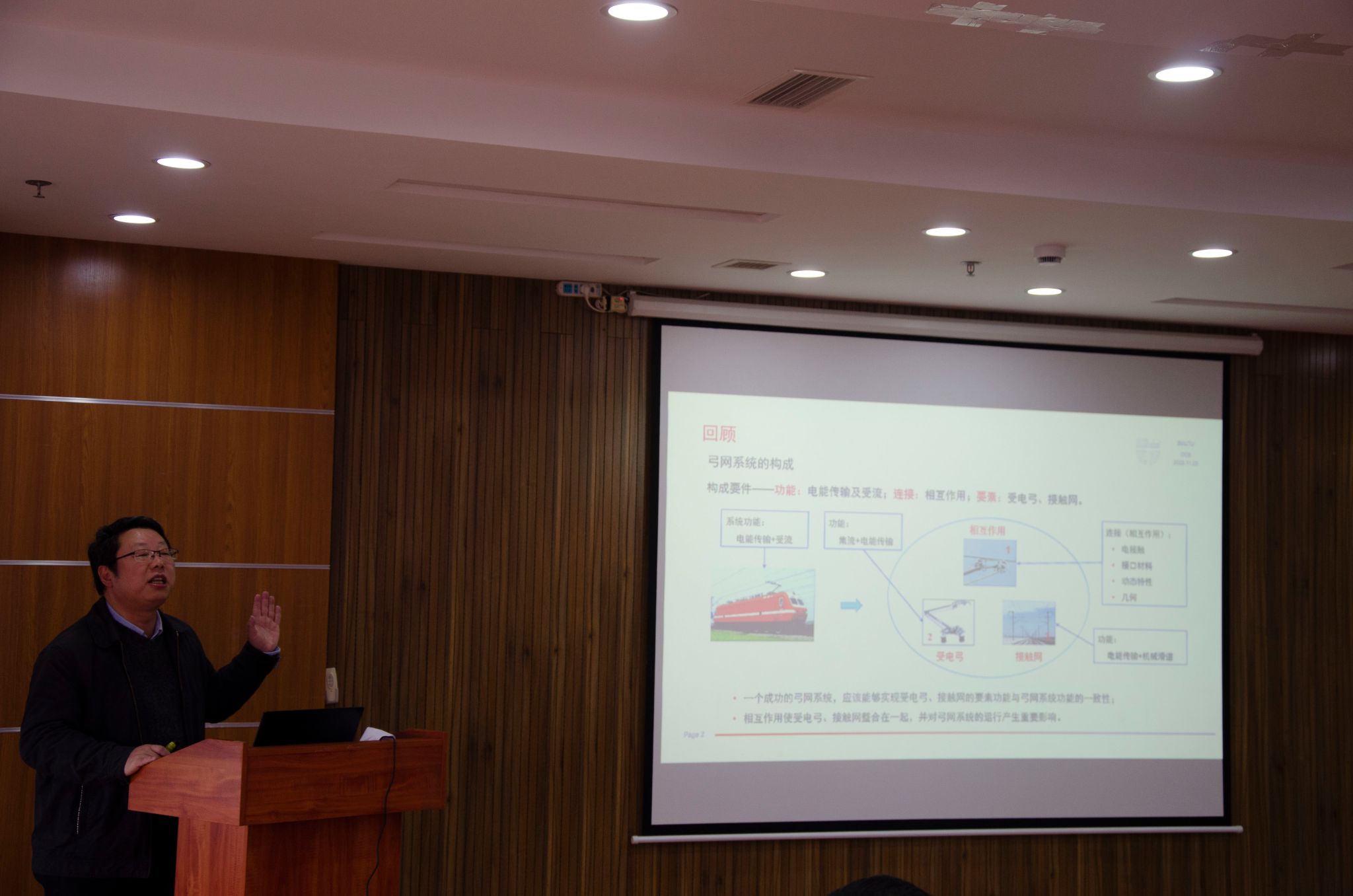吴积钦教授以《弓网电接触》示范课为例,与在座教师分享了先进教学理念和教学技巧。例如,利用有趣的语言调节学生上课的气氛、联系生活巧妙解答疑难问题、图文结合提出问题、利用问题引出挑战性课题,这些都是十分巧妙的办法。吴积钦教授强调,青年教师应学会换位思考,充分考虑学生感受,适时提出思政成人色情。他从人才的问题引出人在学习中如何进步、人的目的性和谋生利益、知识与文化的区别等思考,进一步提出让人理解、为学生考虑、认知与思维的重要性。在最后的结语中提出有教无类、因材施教、教学相长等要点。