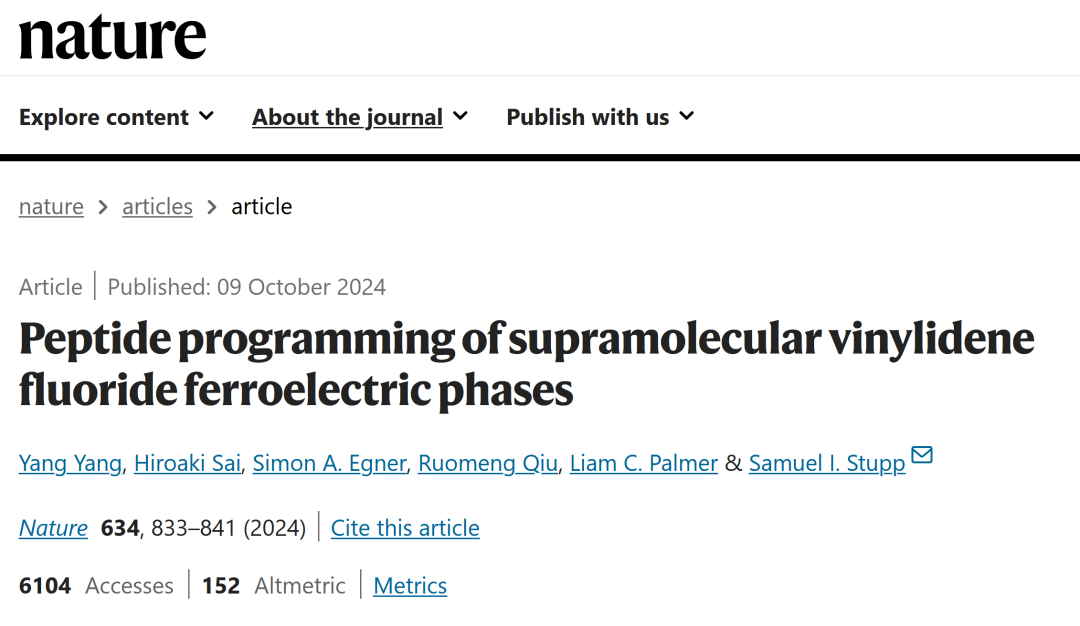 近期,国际著名成人色情 期刊《自然》(Nature)正刊在线发表了电气工程学科、电工材料领域的最新研究成果。该成果的论文标题为:Peptide programming of supramolecular vinylidene fluoride ferroelectric phases,论文的第一作者杨洋博士为成人色情 2010级电气工程及其自动化专业本科毕业生。