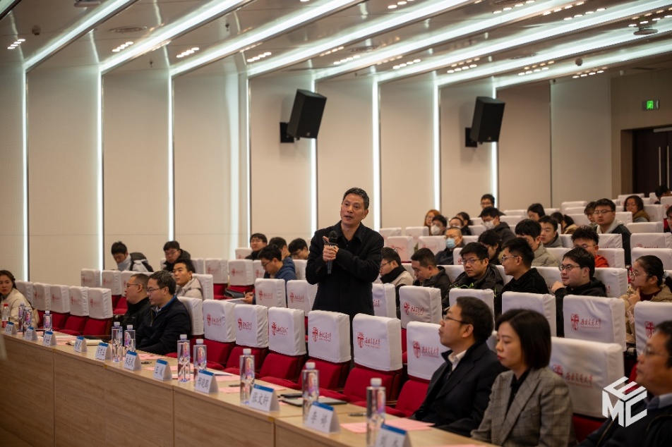 在上午的互动环节中,现场气氛热烈,参会的工程硕博士生们展现出了极高的求知欲,纷纷举手提问。从“新技术落地的工程难点”到“未来职业生涯的规划路径”,同学们的问题犀利且务实;专家们则结合丰富的工程经验倾囊相授,耐心解答,现场呈现出一幅“导学相长、产教共融”的生动画面。