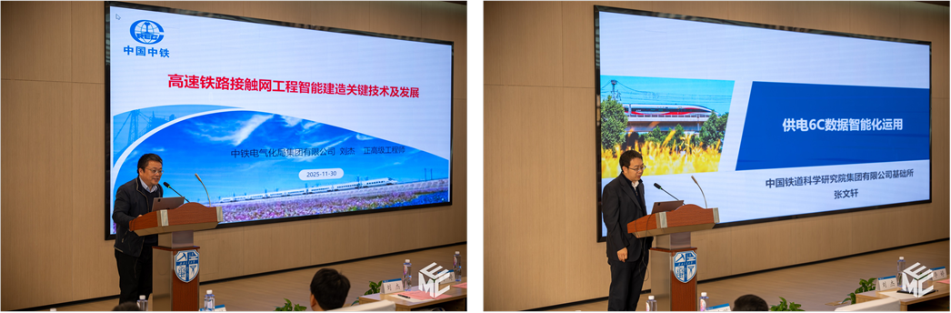 (2) 在“智能建造与数据赋能”板块: 针对数字化转型,中铁电气化局集团电气化铁路编辑部总经理刘杰分享了“高速铁路接触网工程智能建造”的关键技术突破;铁科院基础所副所长张文轩则重点展示了“供电6C数据智能化运用”的最新成果,阐述了数据要素在运维中的核心价值。