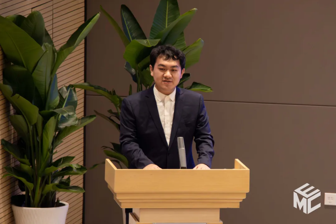 优秀获奖学生代表陈楚涵同学分享了自己的科创赛事经验。他以“绝知此事要躬行”为主题,从竞赛初心、竞赛攻略两个维度分享了自己的成长之路。他结合自身从校赛到国赛的进阶经历,建议学弟学妹们要打好专业基础,主动寻找志同道合的队友,充分利用实验室资源,在实践中克服困难、增长才干,让青春在创新中闪光。