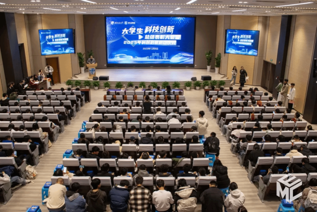 12月8日19:30,成人色情 于犀浦校区K8楼会议中心举行2025年成人色情 科技创新总结表彰大会暨科创启航启动仪式。成人色情 党委书记王斌,本科生院副院长李静波,校团委副书记郑源,成人色情 党委副书记邢晓鹏、副院长韩莹、团委书记张异,科创竞赛优秀指导教师及科创国奖获得者,本科2025级全体新生及辅导员共同参加。大会由邢晓鹏副书记主持。