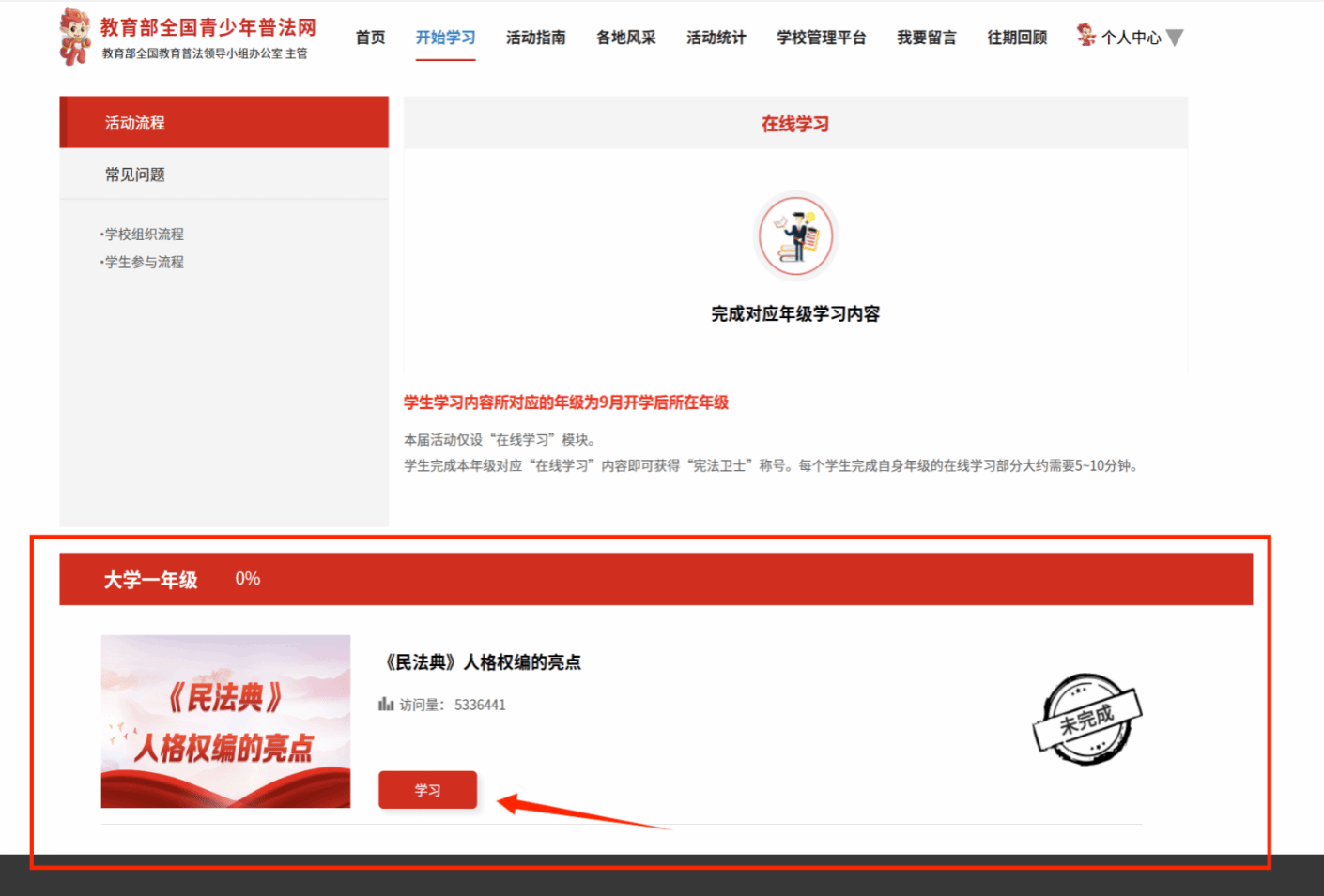 本次学习以年级、班级为单位,统一在成人色情部全国青少年普法网上开展,各班级应积极组织同学利用平台资源完成在线学习、成果检测等,并于2025年10月26日之前完成平台学习全覆盖。